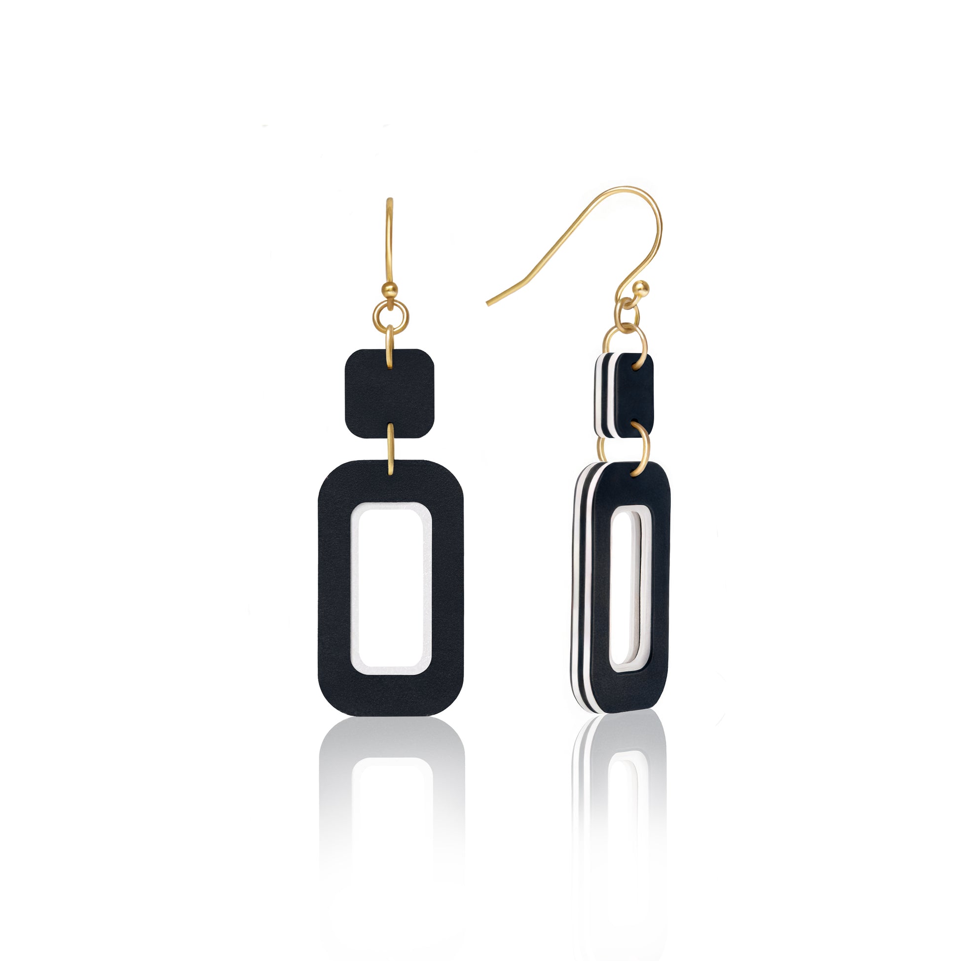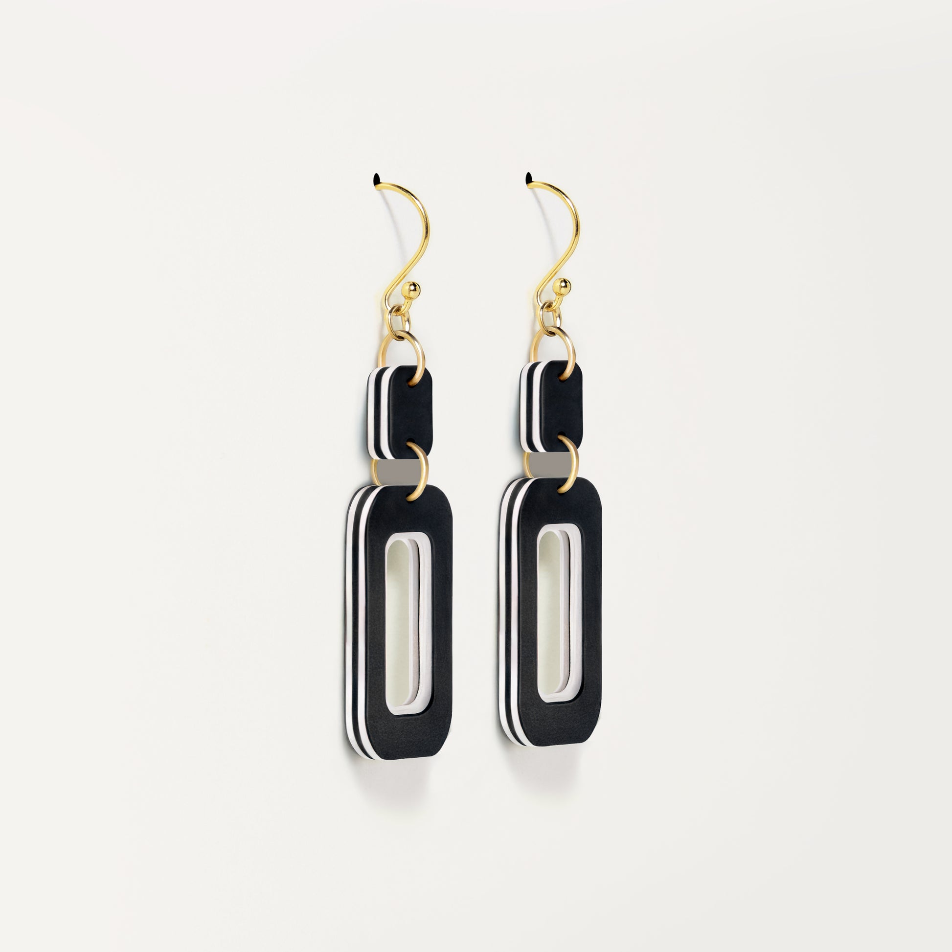 Black & Pearlescent White | Gold Plated 18K Sterling Silver French Hook | Sustainable, Eco Friendly, Handmade, Lightweight