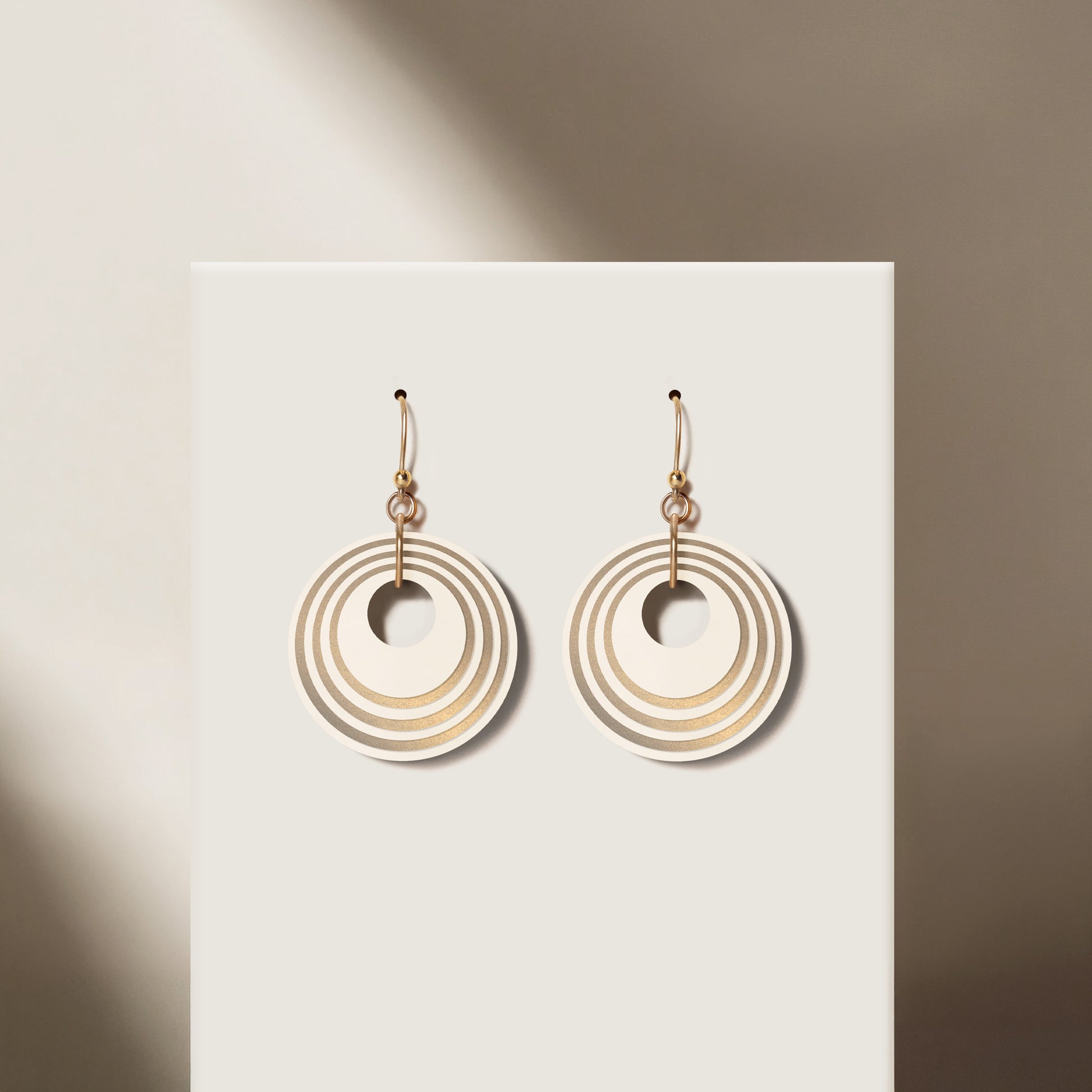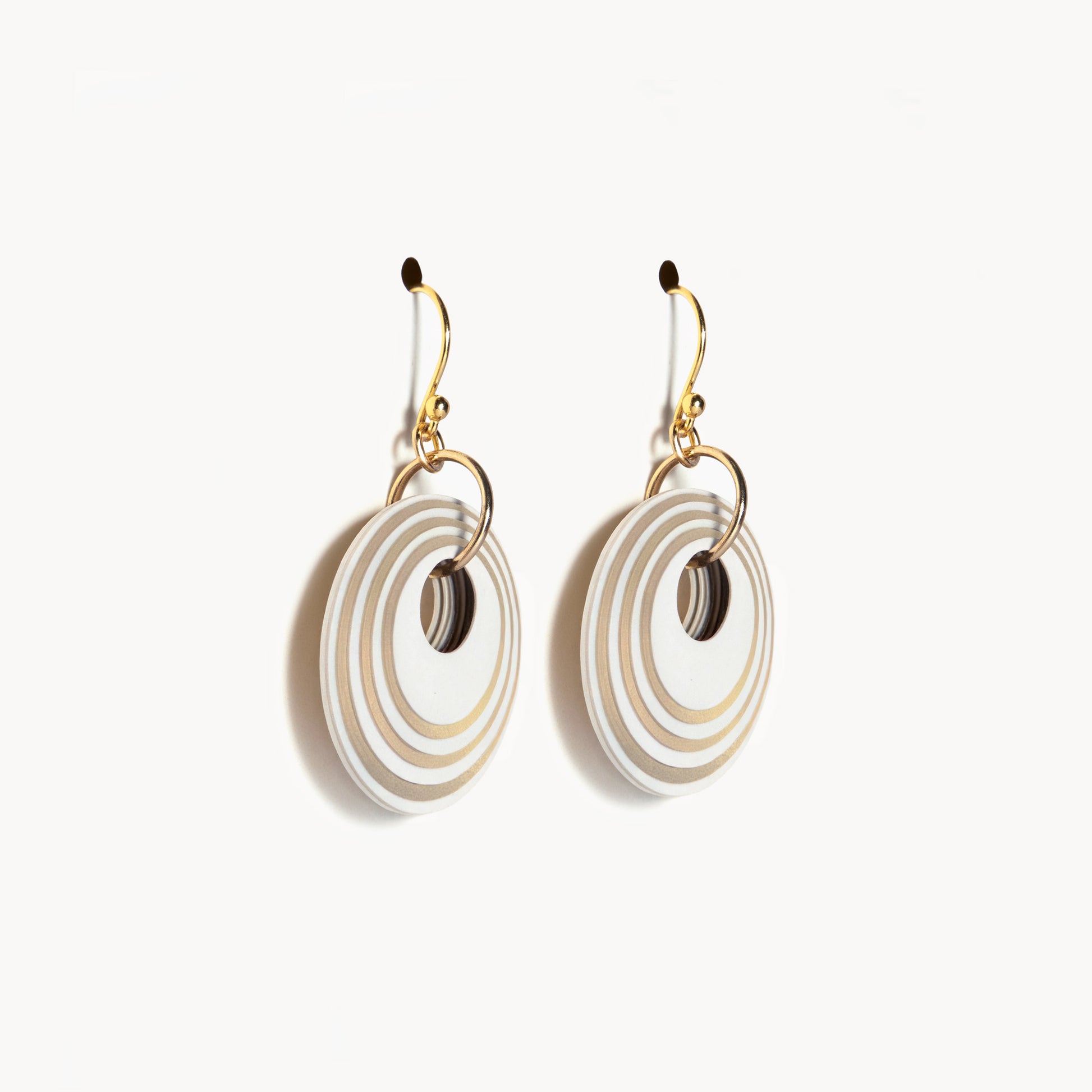 Cream & Pearlescent Taupe Earrings | Gold Plated 18K Sterling Silver French Hook | Sustainable, Eco Friendly, Handmade, Lightweight