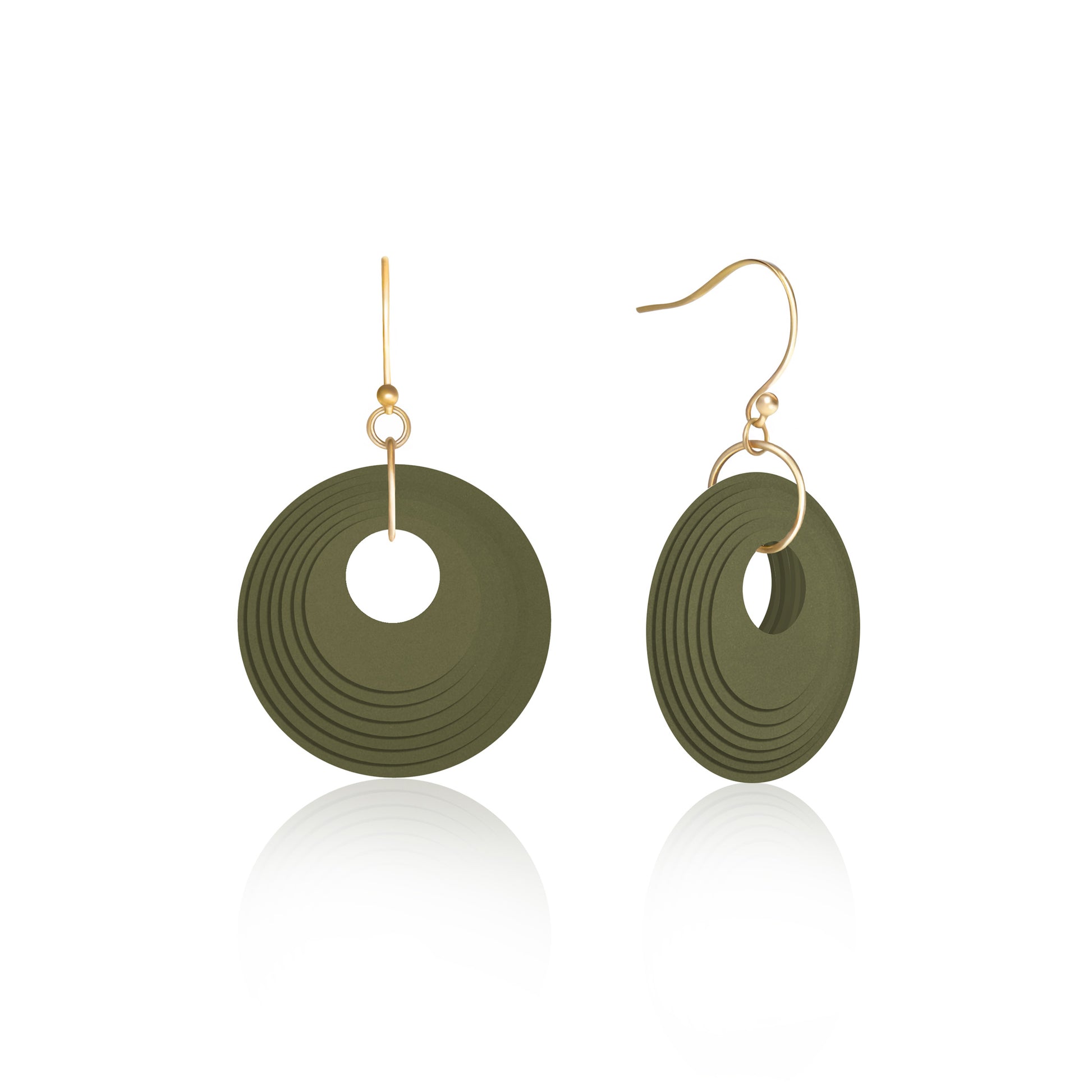 Khaki Green Earrings | Gold Plated 18K Sterling Silver French Hook | Sustainable, Eco Friendly, Handmade, Lightweight